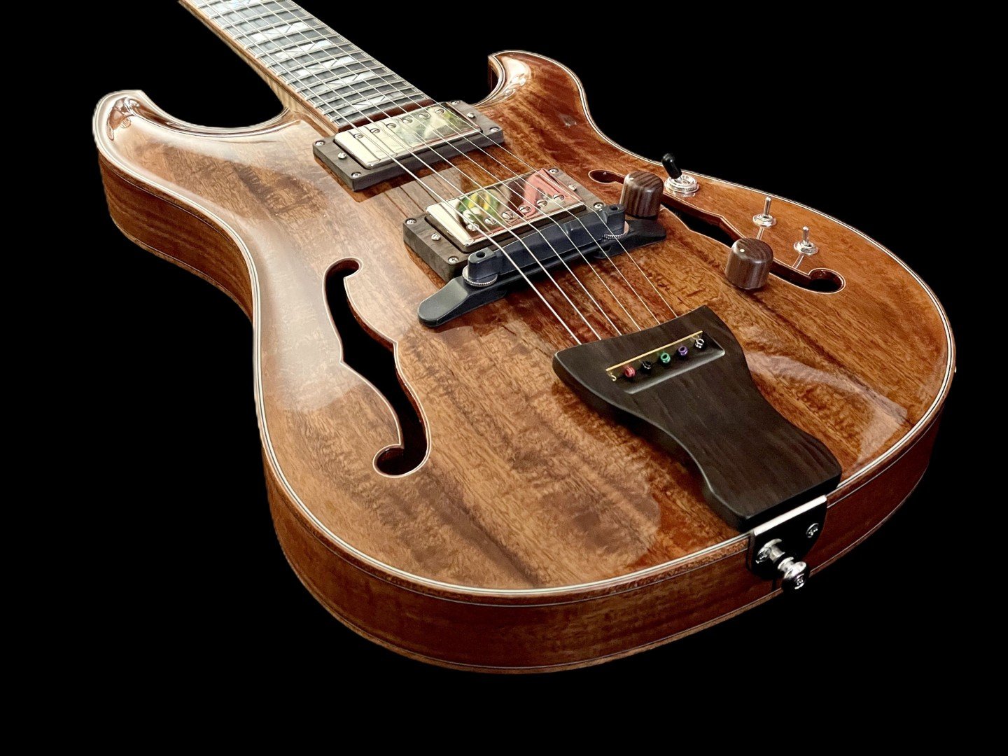 From full, rounded jazz textures to articulate single coil inspired clarity, the GH1 Koa adapts easily to different playing styles and musical settings. The shielded wiring harness keeps the signal clean and responsive while preserving the instrumentโs natural dynamics.