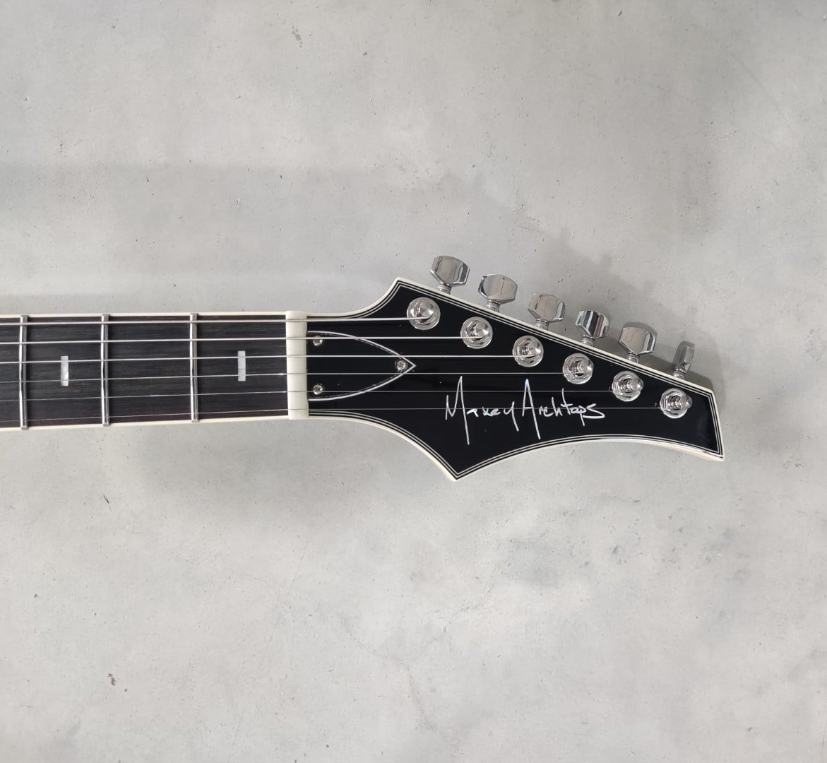 The ebony fingerboard features pearloid inlays and a 14 inch radius, striking a balance between comfortable chord work and expressive lead playing. A double expanding truss rod provides long term neck stability, while the bone nut and 1 11/16 inch nut width offer a familiar feel that suits a wide range of playing styles.
